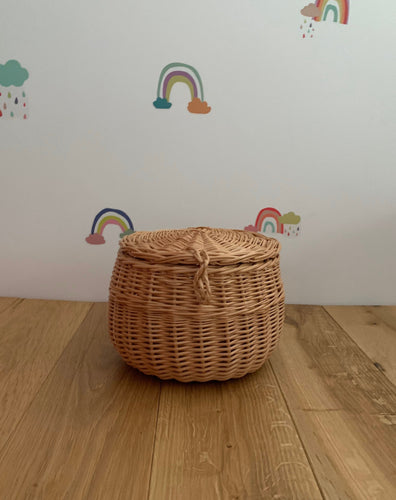 Storage basket ‘Apple’ size L kids interior storage wicker basket kids room, basket with lid, rattan basket, wicker basket