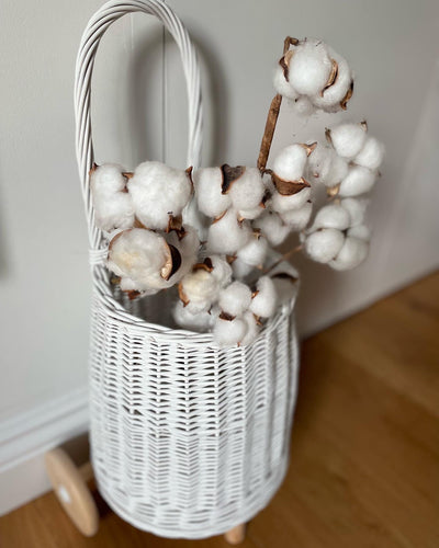 WHITE Wicker pull on trolley size M