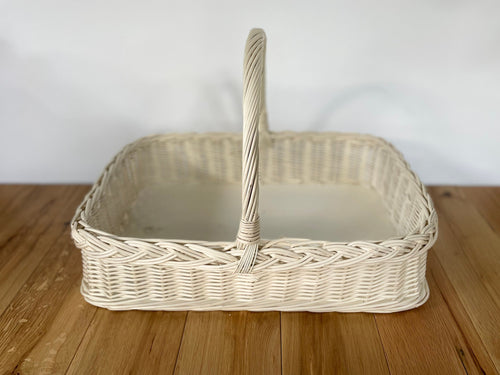 Wicker basket with handle, tray with handle, fruit tray, unpainted, made from white wicker