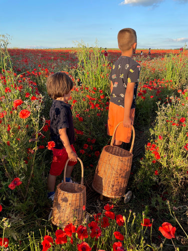 Kids wicker shopping basket, pull on trolley, storage basket, toy basket, Large