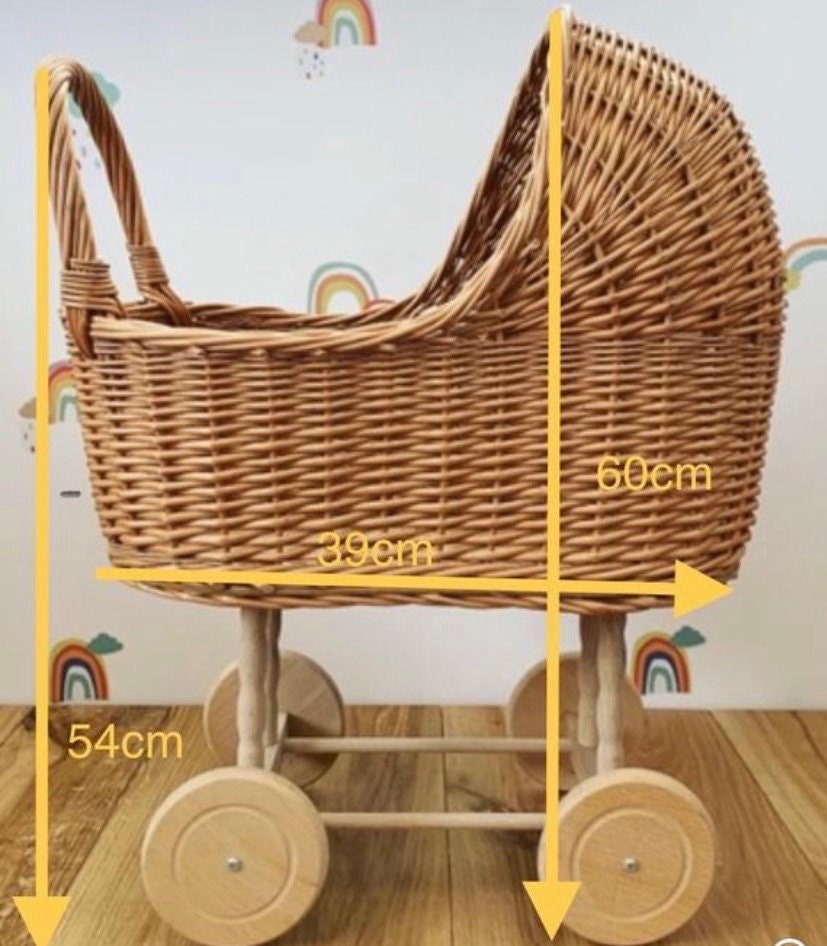 LUXURY wicker pram with bow and bedding included, wicker pram, dolls pram, pram toy, wooden pram, wicker dolls pram, tall natural stroller