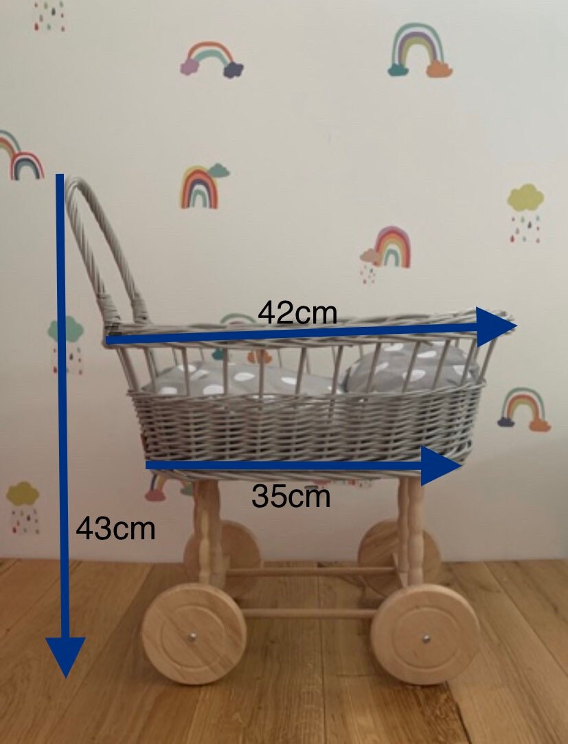 Whether you're looking for the ideal birthday gift, Christmas present or just a special surprise, this wicker pram is a dream come true for any little girl or a boy who loves playing with dolls or just pushing toys around.